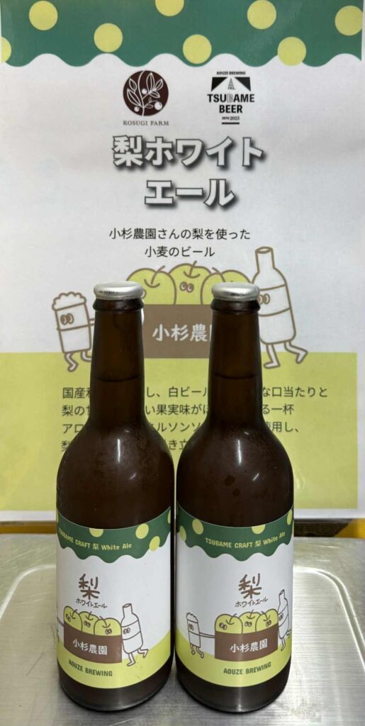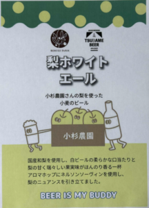 梨のビールは、燕ビールさんと小杉農園のコラボレーション。白ビールの柔らかな口当たりと梨の甘く瑞々しい果実味がほんのり香る一杯。アロマホップにネルソンソーヴィンを使用し、梨のニュアンスを引き立てています。
